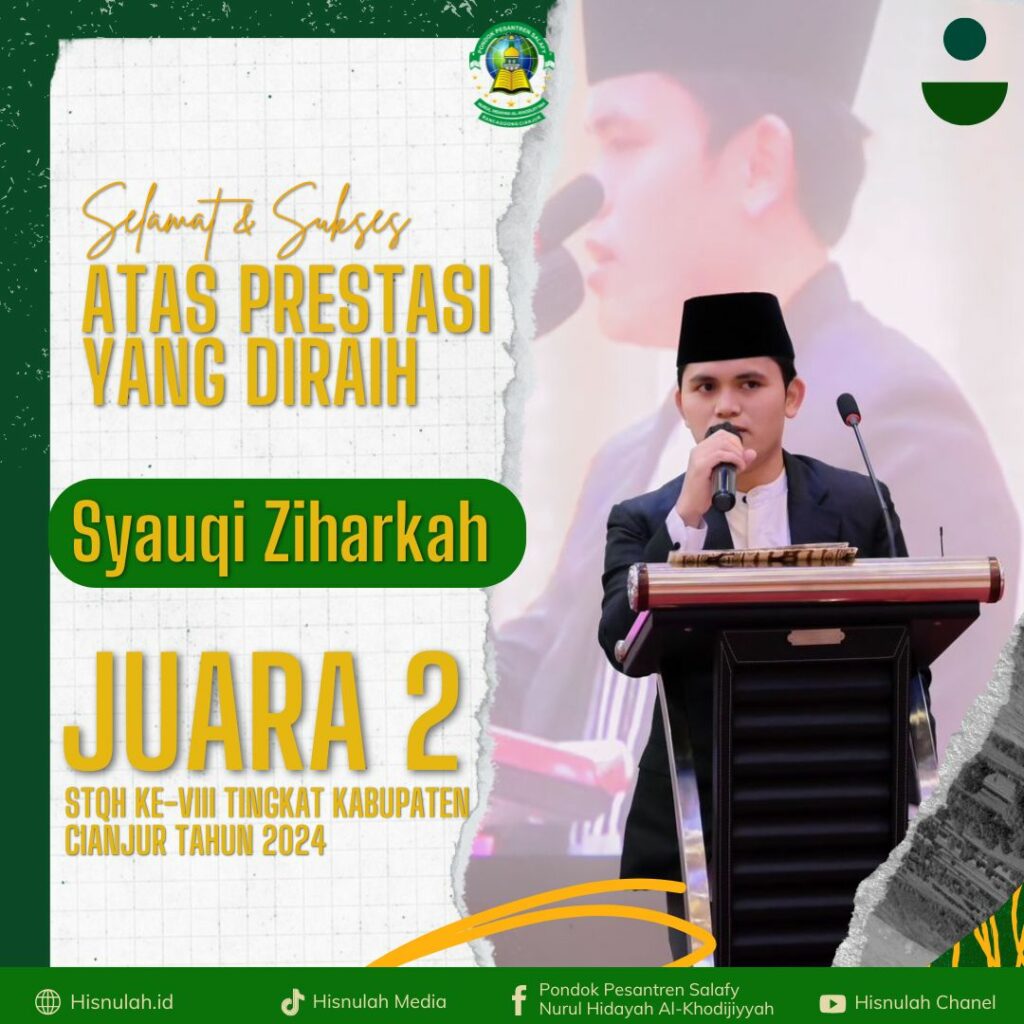 Cianjur, 20 Desember 2024 – Sebuah prestasi membanggakan diraih oleh Ananda Syauqi Ziharkah, salah seorang santri Pondok Pesantren Salafy Nurul Hidayah Al-Khodijiyyah, yang berhasil meraih Juara 2 pada ajang Seleksi Tilawatil Qur’an dan Hadist (STQH) ke-VIII Tingkat Kabupaten Cianjur tahun 2024. Kompetisi yang dilaksanakan pada tanggal 18-19 Desember 2024 di Masjid Agung Cianjur ini menjadi […]