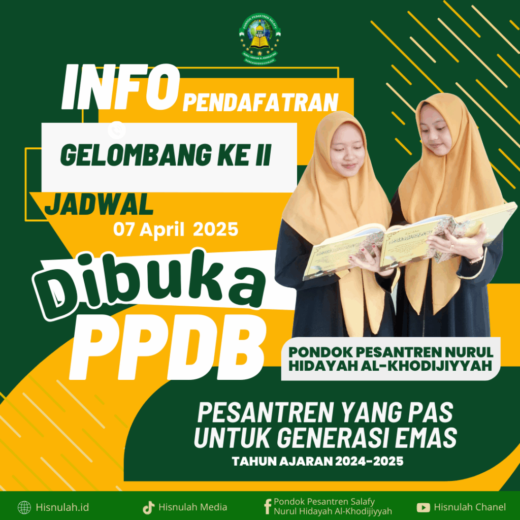 Pendaftaran Santri Baru Tahun 2025: Bergabunglah dengan Pondok Pesantren Salafy Nurul Hidayah Al-Khodijiyyah untuk Pendidikan Berkualitas dan Pembentukan Karakter Islami
